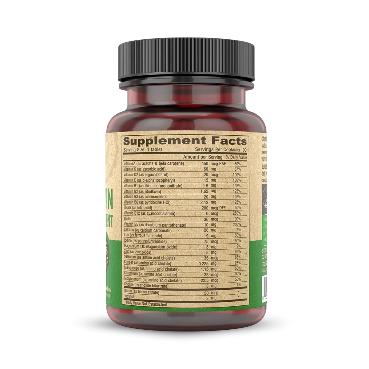 Tiny Tablets Vegan Multivitamins for Women & Men – With Iron, Vitamin C, B Complex, B12, Vitamin E, Zinc, 90 Gluten-Free Tablets
