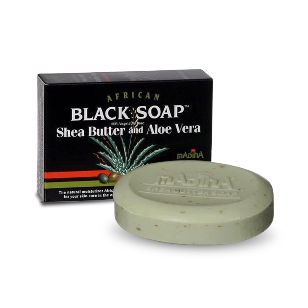 Madina African Black Soap combines the natural goodness of shea butter and aloe vera with the powerful cleansing properties of traditional African black soap. This 100% vegetable-based formula is gentle on the skin, helping to nourish, hydrate, and restore balance while cleansing. Ideal for all skin types, it helps soothe irritated skin, remove impurities, and promote a healthier-looking complexion. Perfect for daily use as part of your skincare routine.