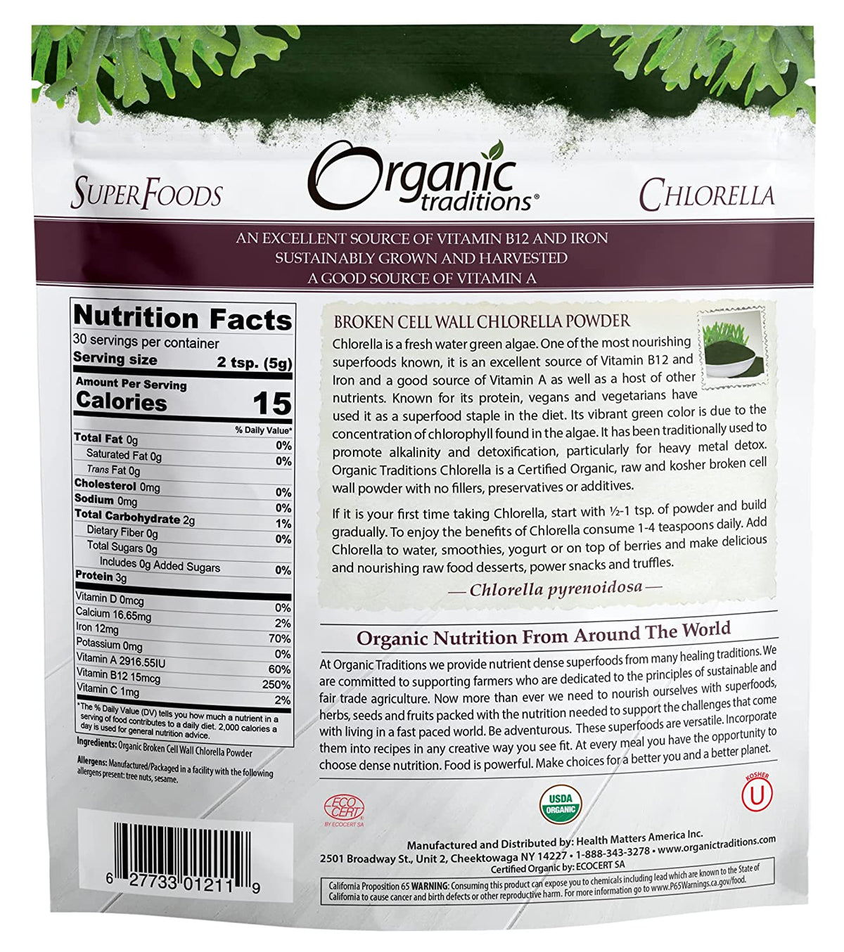- Organic Traditions' Chlorella Powder is made from 100% organic chlorella, A fresh water green microalgae