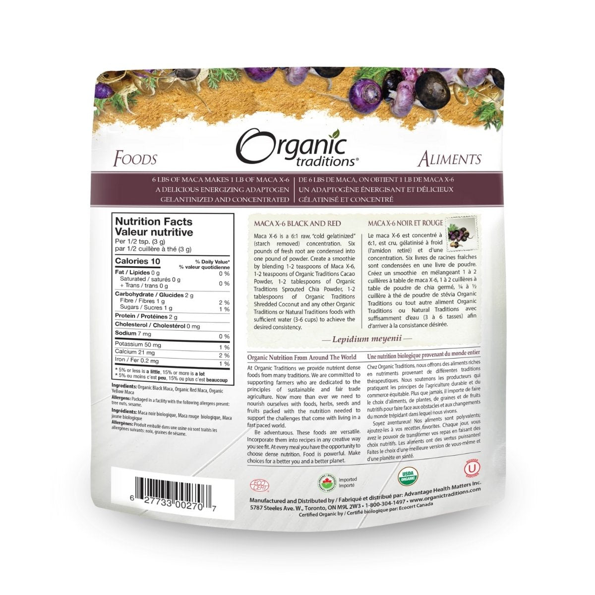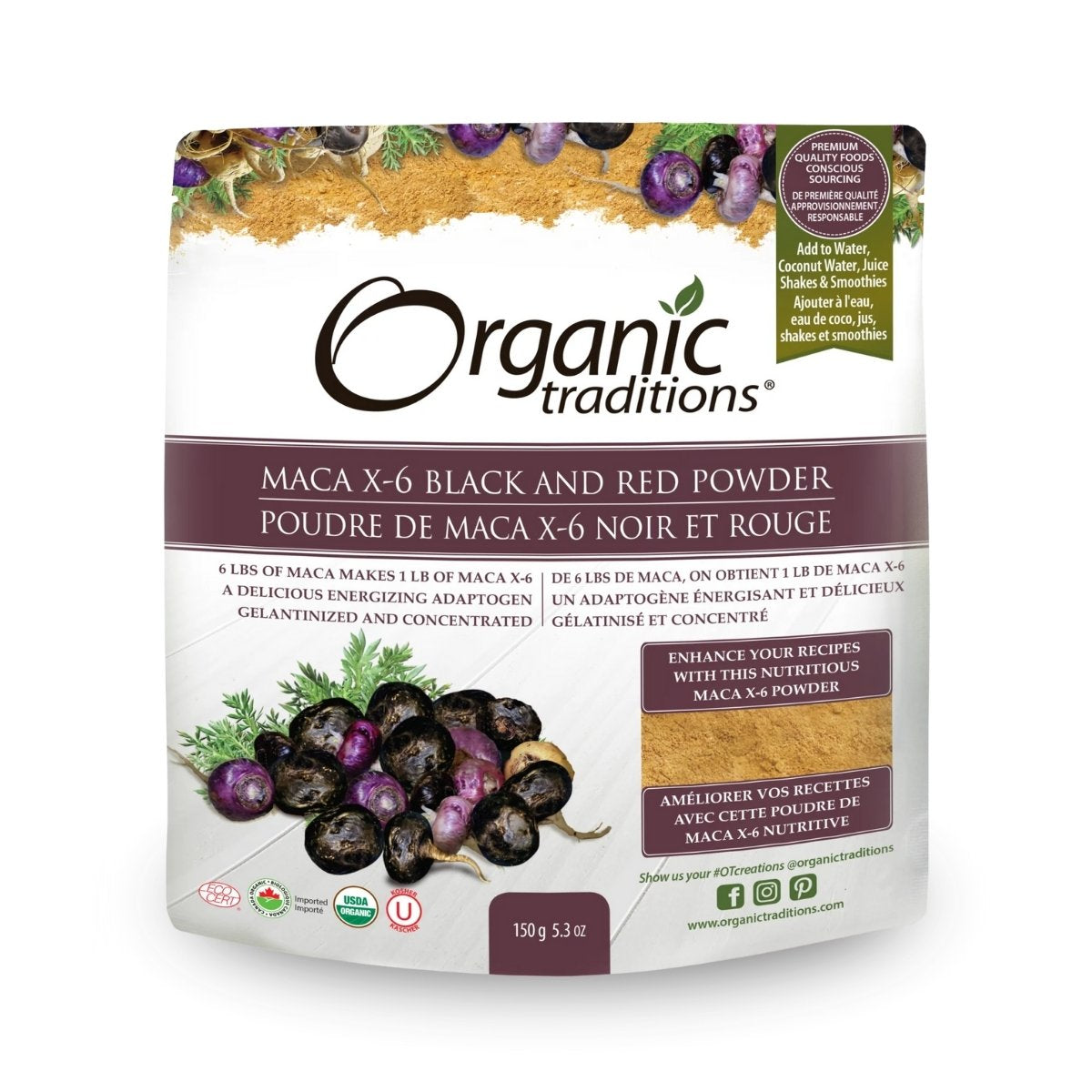 Organic Traditions Maca X-6 Powder is a highly concentrated 6:1 blend of organic raw black and red-purple maca roots, traditionally used to support energy, stamina, and hormonal balance. This potent superfood helps promote vitality, endurance, and overall well-being, making it ideal for both men and women. With a smooth, malty taste, it’s easy to add to smoothies, lattes, or recipes for a daily nutrient boost.
