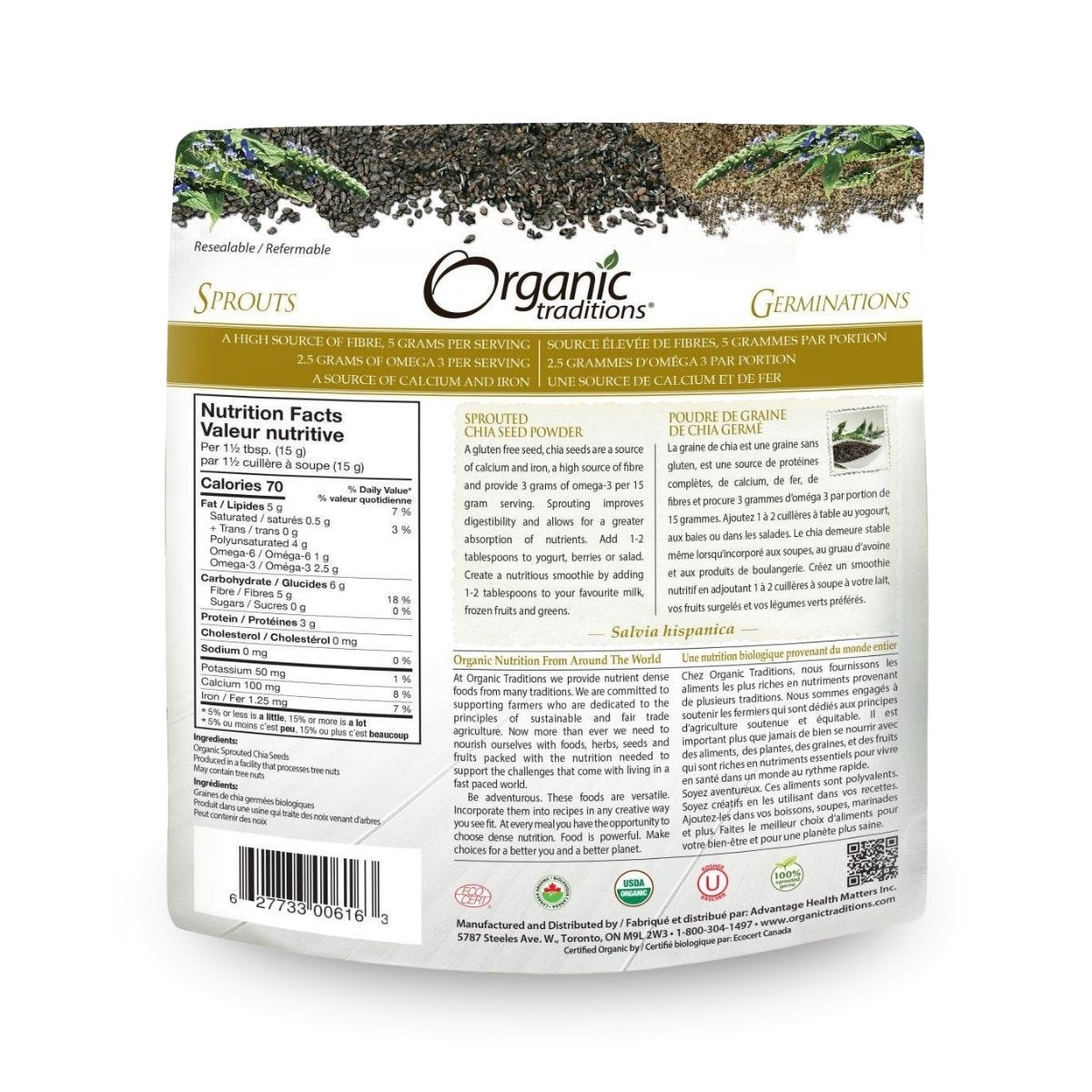 Organic Traditions Sprouted Chia & Flax is a nutrient-dense superfood blend combining two powerful seeds in their sprouted form for enhanced nutrition and absorption. Rich in omega-3 fatty acids, fiber, protein, and essential minerals, this organic blend supports digestive health, heart health, and sustained energy. Its mild nutty flavor makes it easy to add to smoothies, yogurt, oatmeal, or baked goods for a daily boost of plant-based nutritio